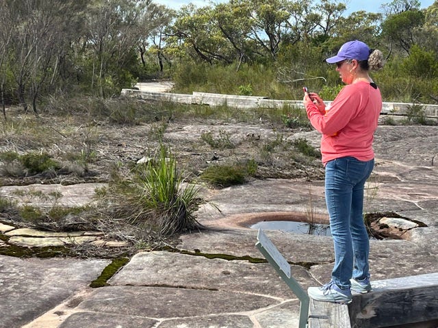 We visited Simon’s family’s beach house an hour north of Sydney in Mackerel Bay, reached by boat. There we took a bush walk—replete with wallabies—to see aboriginal stone carvings thousands of years old.