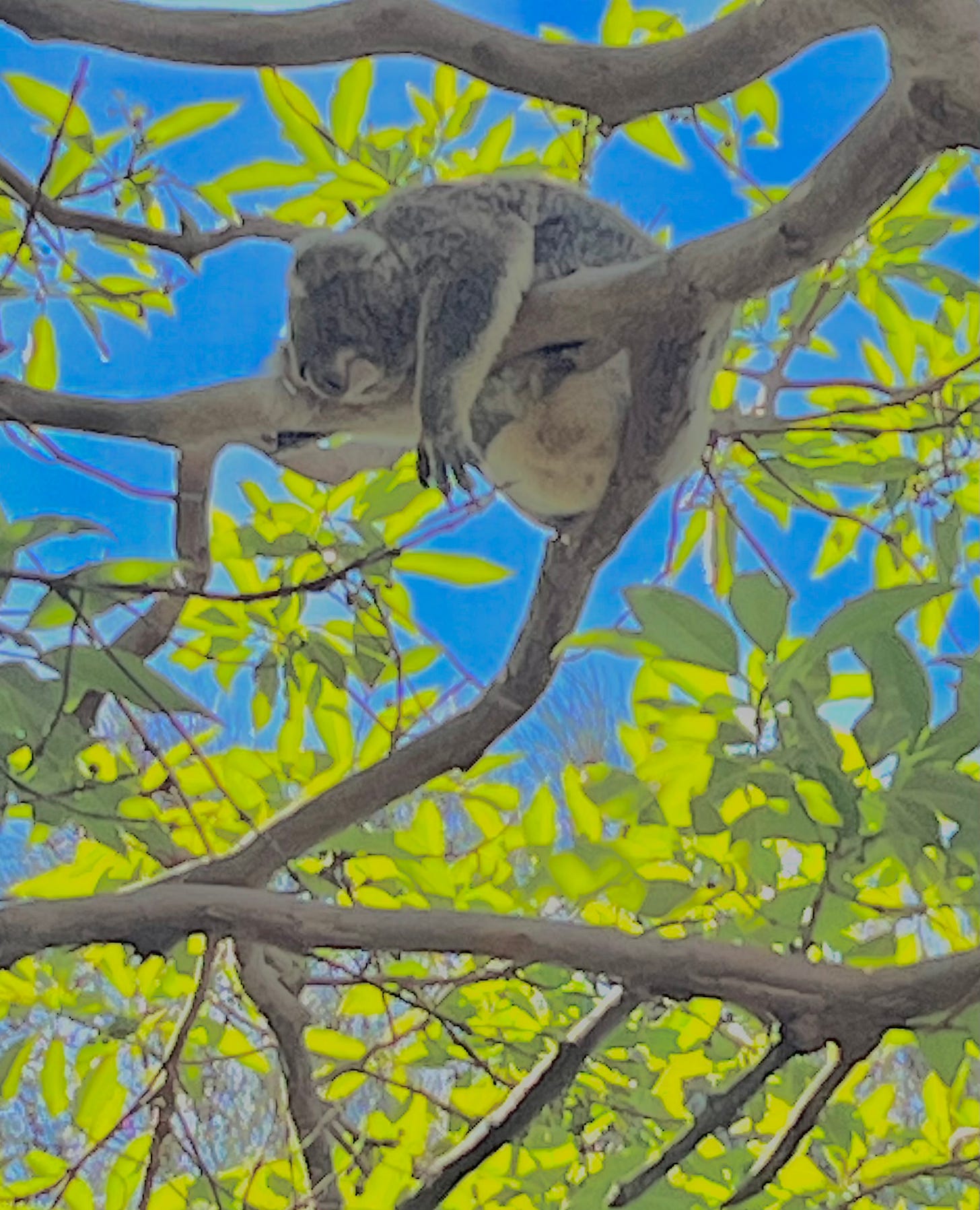 I leave you with a snoozing koala. Koalas sleep between 18 and 20 hours a day, because their diet of eucalyptus leaves is low in protein.