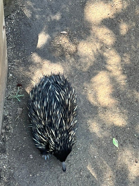 By ferry across Sydney Harbor, we went to the Taronga Zoo, where Dan fulfilled a lifelong dream of seeing a platypus (okay, I was thrilled too), as well as other exotic Australian animals. Below is an echidna, a quilled mammal that lays eggs, as does the platypus.