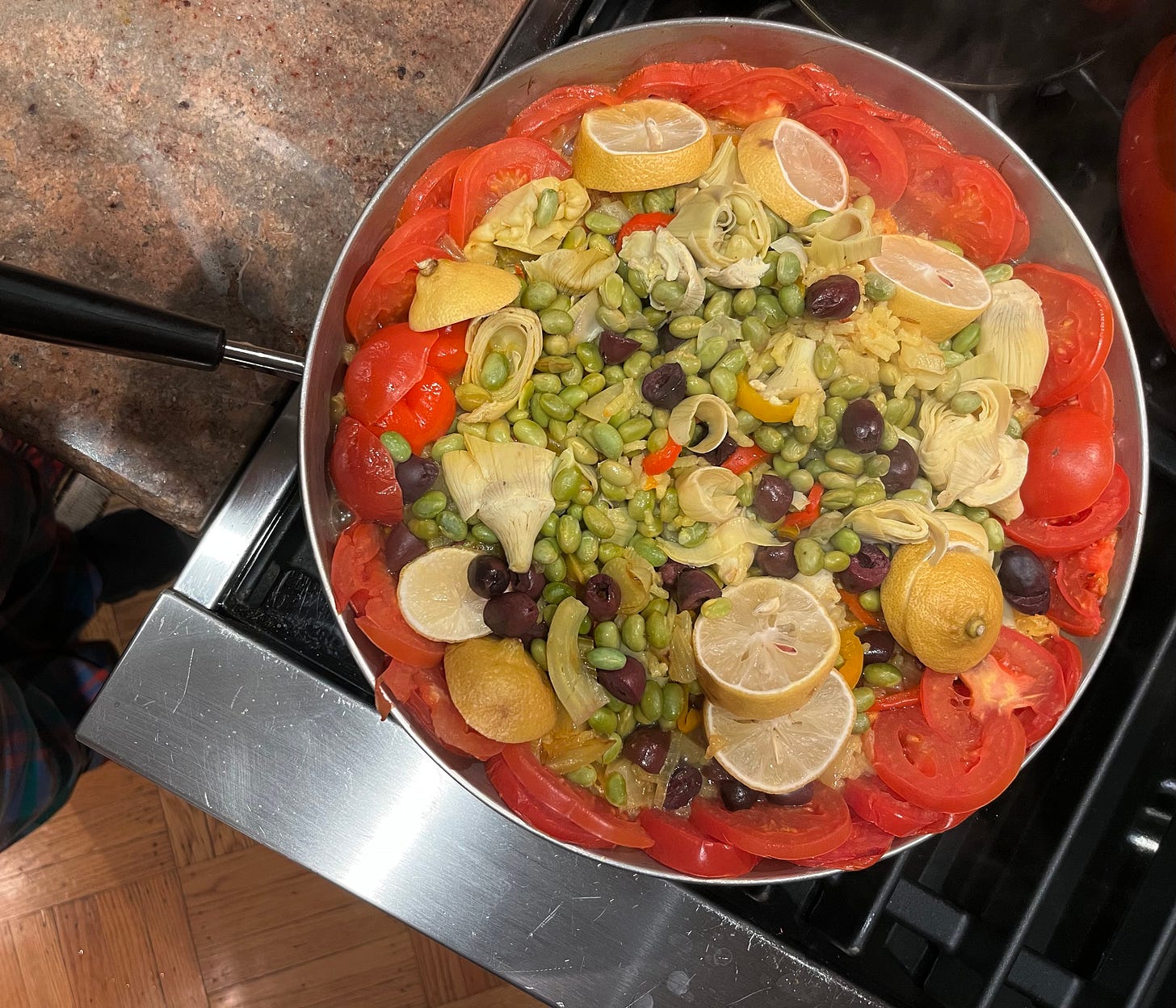 And finally, on a lighter note, when the going gets tough, I get cooking. Here’s my version of Ottolenghi’s vegetable paella: