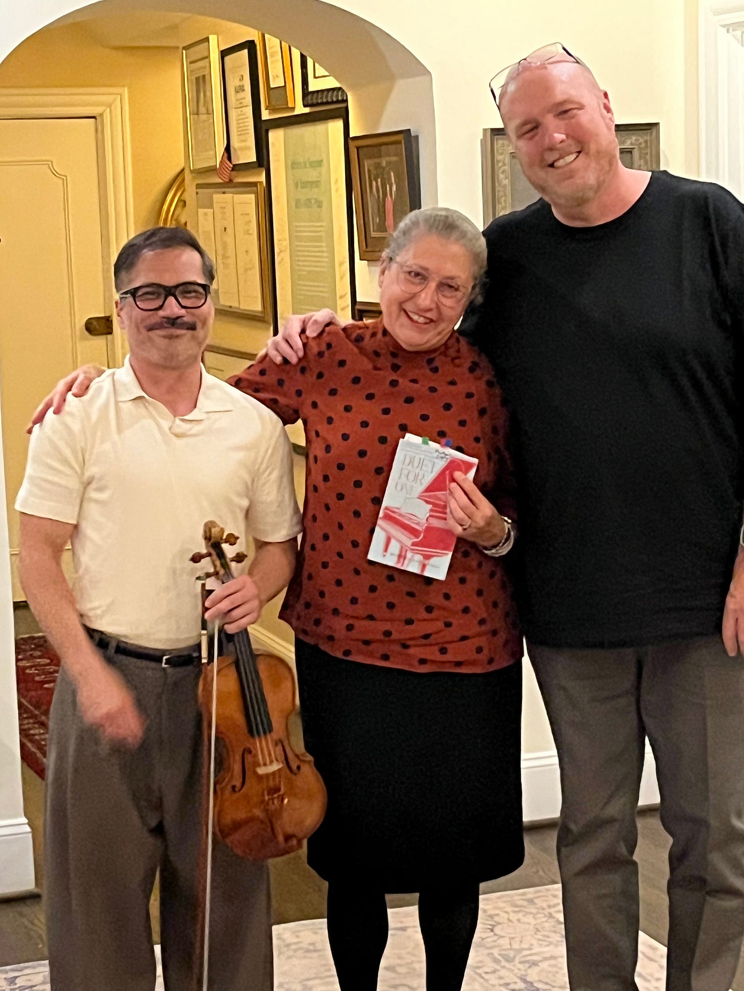 The program was really about neighbors and community. Walter and I had begun to discuss the possibility of repeating the event in a different venue over the summer. I unknowingly emailed him yesterday to introduce him to a violinist he hadn’t met.